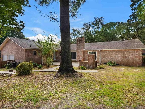 HIDDEN GEM..This beautiful home on a CORNER LOT in a cul de sac surrounded by MAJESTIC OAKS is a rare find. This solid brick home has many retro unique features blended with fabulous upgrades! Upon entering this home, you will notice a SPACIOUS FOYER with an UPDATED 1/2 bath on the left. To the right, you have pocket doors to a BEAUTIFULLY WELL LIT FORMAL LIVING ROOM with 3 UPGRADED BAY WINDOWS...and this room adjoins a formal DINING or SITTING ROOM which enters into a nice sized kitchen -PERFECT for an EAT IN kitchen bar or table- to the right of the kitchen is a SPACIOUS DREAM-LIKE laundry room with bathroom and large window overlooking THE OUTDOOR patio surrounded by oaks with a STORAGE UNIT and NEW swing set. To the left of the kitchen is ANOTHER FAMILY ROOM with a fireplace (completely redone) and sliding glass doors with ADDITIONAL LIGHT. THE home has been through the Rebuild Northwest Florida program and includes Hurricane panels. MANY UPGRADES: ROOF, INSULATED WINDOWS AND DOORS, luxury VINYL PLANK floors, APPLIANCES, PLUMBING & ELECTRICAL FIXTURES, SOLID SURFACE COUNTERTOPS plus a TILED shower with glass doors in the master bath. The backyard has a large patio perfect for entertaining - as well as a Brick BBQ pit and PRIVACY FENCE....PICTURESQUE!! This home is close to the Corry Naval station and some mornings you can hear the National anthem!! This home has been loved and will not last long!