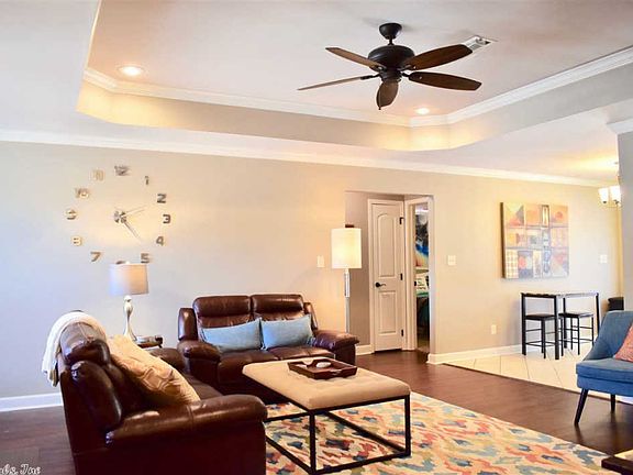 Fantastic home with many extras! Open living to kitchen/dining area. Large family room has fireplace & tray ceiling. Tiled kitchen features solid granite tops, tiled backsplashes, beautiful wood cabinetry plus built in pantry, and stainless appliances- gas range. Split BR plan w/ office or 4th bedroom. Master features 8- 9' pan ceiling, big walk-in closet, dbl vanity & oversized shower. 2'' custom blinds & lots of moulding thru-out. Privacy fenced backyard and large patio. End of cul-de-sac.