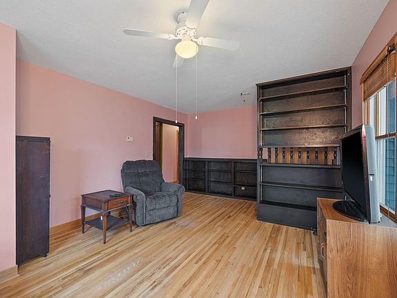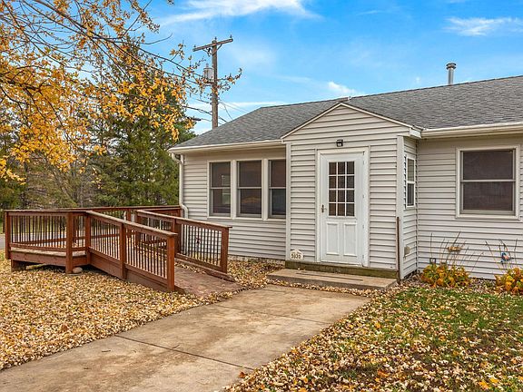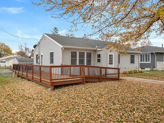 Great opportunity to own 2 Bed, 1 Bath rambler on corner lot. Home features large primary bedroom w/2 closets, full bath, spacious kitchen w/granite counters, double wall oven, gas cooktop, hardwood floors, built in shelves in the living room. Lower level is unfinished plenty of room for storage or workshop area. Large detached garage, and huge deck overlooking fenced in backyard. Conveniently located 1 block from Hwy. 55.