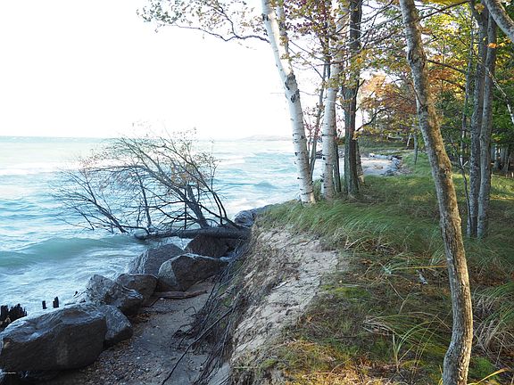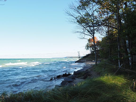 Spectacular Lake Michigan frontage with extremely low bluff to the beach! 125 feet of Lake frontage along with a 2,500 sq. ft. Home. Boulder retaining wall recently installed. The property runs on both sides of Lakeshore Road. The East side surrounds Mud Lake with a great buildable site surrounded with a beautiful mature forest. There have been several major updates made to the house within recent years, just waiting to be cosmetically updated to personal taste. Has a very cute 2 BR mother-law / apartment upstairs with a kitchenette and a living room space, that could be easily converted into a rental. Full basement with high ceilings and lots of storage. Great location with a great view! Great investment opportunity and potential vacation rental. Schedule your tour today!