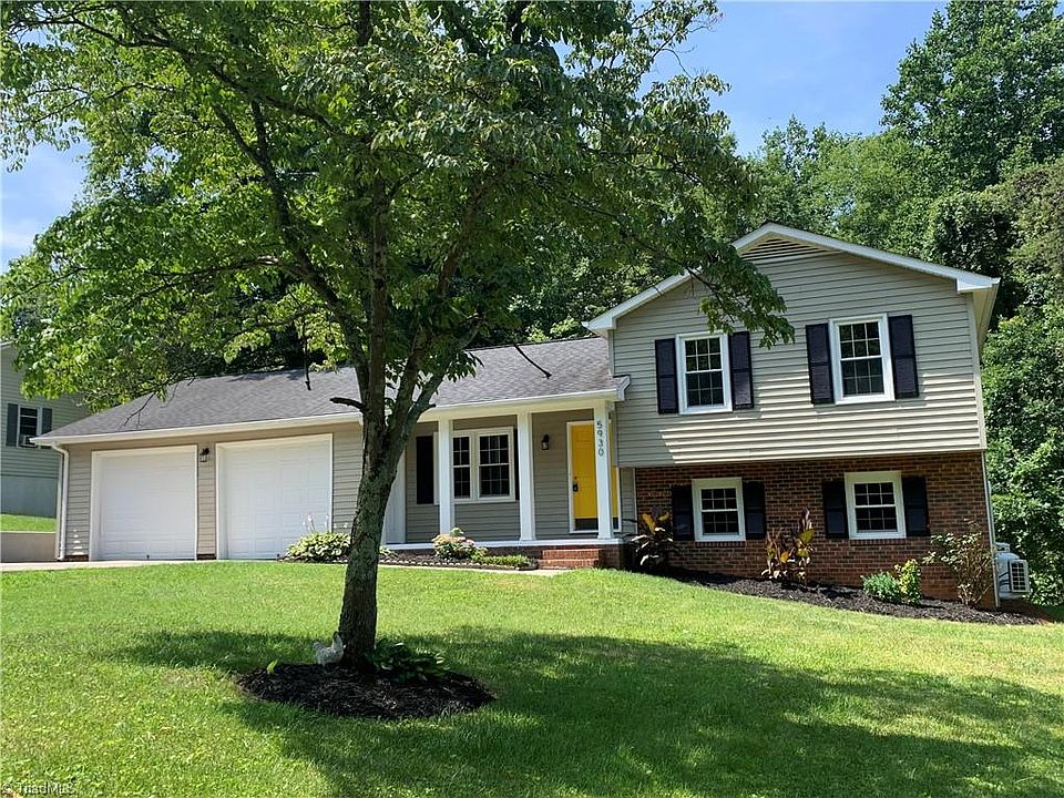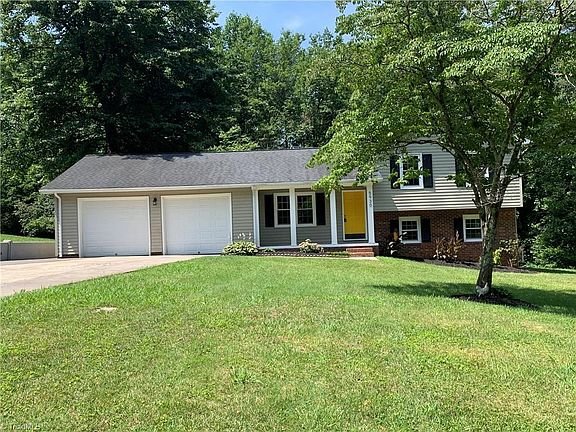 In a nutshell this is the adorable split-level with the yellow door! This beautifully remodeled 3/1.5 has a lot of great features to offer including an awesome oversized attached 2 car garage! It's also situated on a small, quiet street with a cul-de-sac and has a mostly wooded, private back yard. The most recent updates include a new water heater, custom paint throughout, new mini-split HVAC system with smart technology in the lower level, new carpeting and LVP, new hardware, and locksets. The kitchen boasts a newer stainless steel Frigidaire Gallery Collection appliance suite. Located in a super convenient area very close to the new northern loop expansion of the I-74 corridor and to Winston-Salem and all points of the greater Triad area. A must see!!