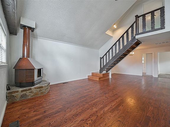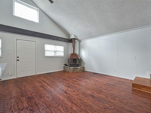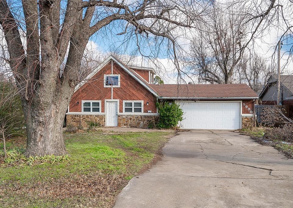 Unique A frame house recently remodeled inside with new carpet, paint and refurbished real hard wood floors! Located in Putnam City schools this home has a huge backyard (not pictured) with trampoline and open concept floor plan - both great for entertaining! Master bed and bath are the complete upstairs. Secondary bedrooms and bathroom are downstairs. Area on the back side of the stairs could be a dining room or an office area. Inside laundry room with washer & dryer that will stay. They are in working order yet will convey as-is. 2 car garage to keep your car safe from bad weather additionally has a window a/c unit if you like to work out there. Over a quarter acre lot just minutes from highways, restaurants and schools. You won't want to pass it up!