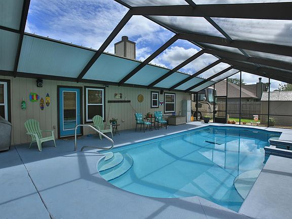 This beautifully maintained, updated Pool Home is in move in condition!!! There is no HOA in this lovely neighborhood located in the most desired Port Orange school zones including Spruce Creek High School. Upgrades to the home within the last 5 years include Kitchen cabinets with granite countertops, Appliances, A/C system (2015), Windows, Skylights, Fence, Garage Door, all new exterior and interior doors, both baths updated with new vanities and all flooring has been updated. The open great room concept has cathedral ceilings, wood burning fireplace, new skylights and french doors leading out to the very large pool and lanai. The kitchen has plenty of cabinets and counters along with a pantry and wood look tile flooring.The tile flooring is carried through to the large dining room just off of the kitchen and opens up to the Great Room. The Master Bedroom is very large with cathedral ceilings, an updated master bath and plenty of natural light.The 2 additional bedrooms are located on the opposite side of the home with a shared updated bath.All bedrooms have bamboo flooring.There is an indoor laundry room with a cabinet for extra storage. The gorgeous pool with a fountain is large enough for the whole family and has a very large lanai and screened enclosure.The fully fenced in back yard has a parking area for your RV or Boat with a large double gate for access.There is a shed that will remain for extra storage.The beautifully landscaped yard includes fruit trees, palms and crepe myrtle trees.The garage is spacious and has cabinetry that will convey with the home.This home has been updated from top to bottom and is located in a great neighborhood close to schools, All Children's park, Neighbor's Family Store, shopping and just a short drive to "The World's Most Famous Beach".