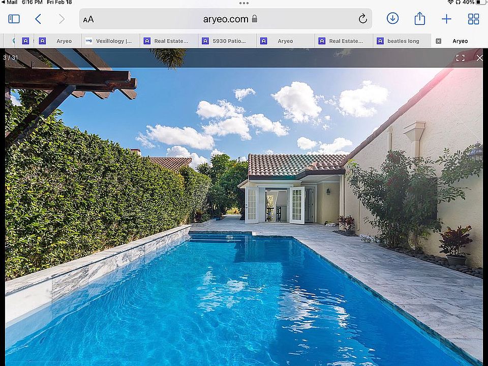 Boca Raton Mediterranean Villa Call 561-236-5734 In a beautiful lush landscaped, safe, secluded and quiet award-winning neighborhood. Centrally located providing nearby excellent schools, shopping, and restaurants *** A fusion of contemporary, modern, and traditional Mediterranean design for South Florida indoor/outdoor living *** Completely renovated two bedroom/two bath with fireplace and Southern exposure bringing in coveted natural sunlight throughout the day situated with a beautiful lake view *** brand new custom kitchen with custom – built Wood cabinets, pantry, stainless steel appliances, wine cooler, white marble countertops beautiful large 24“ x 48“ floors *** German Hans Grohe hardware in spacious master bathroom large walk-in custom shower with relaxing overhead rain shower Villeroy and Bosch toilets *** Second BR with Office/suite …. overlooking beautiful ocean blue swimming pool … amazing evening/night time lighting of the private courtyards palm trees and lush green landscape surrounded by 1350 ft.² a beautiful natural marble stone *** 400 ft.² custom climate controlled laundry room/game room with sink new washer and dryer plus spacious two-car driveway for guest *** viewing by appointment *** Cash buyers only 561-236-5734