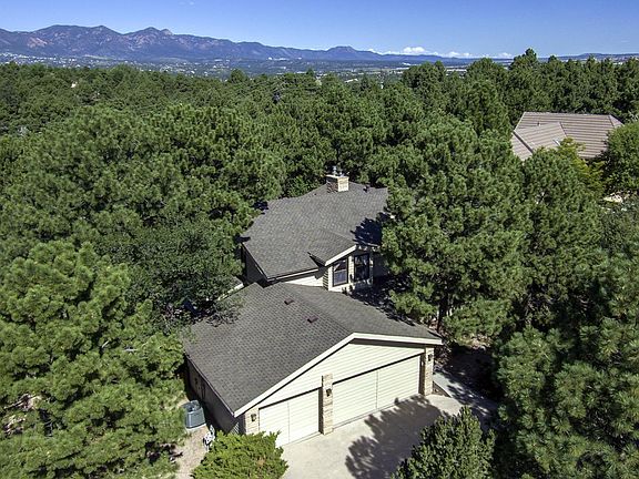 Gorgeous updated home in Erindale Park. Vaulted ceiling in family room with floor to ceiling windows overlooking the beautiful landscaped yard and wood burning fireplace to cozy up to during the winter months. Gourmet kitchen completely remodeled with granite counter tops and new windows that give amazing Pikes Peak views. Master suite with walk out to private patio to enjoy your morning coffee or evening tea along with a luxury master bath, gas fireplace and private office. Lots of privacy, trees, and views. A MUST SEE!