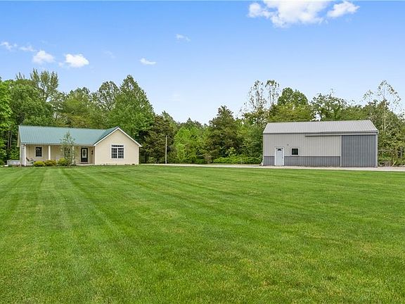 Private, 3 bedroom, 2 full bath ranch situated on 9.6 acres with a large pole barn. This lovely, well thought out ranch home features 1544 finish square feet that includes a spacious eating kitchen, vaulted ceiling s, master bedroom and bath, two secondary bedrooms and a second, full bath. On this secluded, 9.6 acre, partially wooded property, you will find a 32 x 40 pole barn with 100 amp service perfect for storage, a work shop or parking your cars. Outside you will find additional small barns date back to the original homestead as well as a fully modern storm shelter perfect for keeping safe in a storm.
