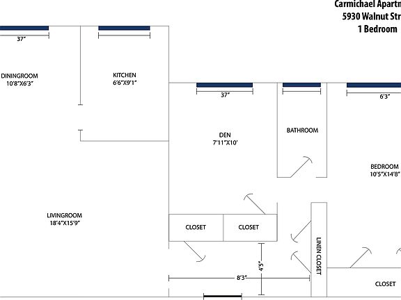 The Carmichael is a 13 unit building located in the heart of Shadyside on Walnut Street. The apartments have one main bedroom with walk-in closets and one smaller room which could be used as an office, den, nursery, for example. The reason these are not listed as standard 2 bedroom units is because of the size of these 2 rooms. Both rooms have doors and closets. The main living / dining area is quite spacious. The kitchens are fully equipped with a gas range stove / oven, fridge, and dishwasher. There is a front hall closet and storage closet in the hallway. Apartments are all painted as needed, professionally cleaned, and repairs are made to any broken appliances and accessories before a turn over. Please be aware, this is a ground level/basement unit. This is why this unit is priced in this way. The Shadyside location is very popular since it is close to public transportation, shopping, restaurants, schools, universities, and hospitals. The commute to downtown and Oakland is very convenient. Please contact Kamin Realty to set up a showing or to obtain video. Landlord pays gas (heat), trash, water and sewage utilities. There is a $50 monthly fee for these services. Tenants are responsible for electricity. Kamin Realty does not provide central wi-fi or cable services, hook ups are available for tenants to set up their own accounts with the provider. Tenants can set up their own accounts. Street parking is free and garage parking is subject to availability for an additional fee. No central AC. Window AC units can be provided by tenants. Maintenance can help with installation. Pet policy is a one time fee of $600, with half refundable at the end of the tenant's stay. No sublets are permitted.
