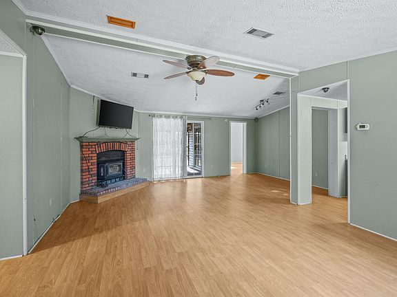 What a total package! Nearly seven creek-adjacent acres, triple wide mobile home, separate slab garage with roller door, storage shed with work shop area, above ground concrete wind resistant safe room and RV/boat carport // Located only 22 minutes from the center of downtown Tallahassee and 12 minutes from the nearest Publix grocery store, you can enjoy rural living without the long commute // Separately fenced yard and screened porch attached to mobile home // Inside the home is a spacious living space and split bedroom plan // Living room has wood burning fireplace // Master suite has large tub and big walk-in closet, as well as direct screened porch access // Could use new flooring as some of the laminate flooring is damaged // Storage shed has workshop bench with vice and lots of room for hobby supplies // Garage with rolling door could fit a vehicle and lots of other items, and comes with built-in shelving