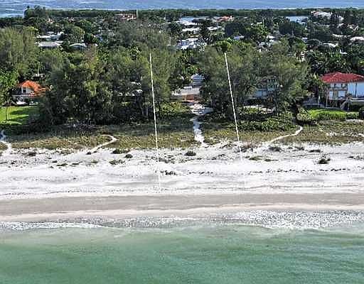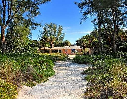 Nestled among the native Florida palm and pine trees is truly one of the best beach front estate parcels available on Longboat Key. This magnificent, unspoiled 1.3+ acre beach front estate with 100 feet on the Gulf of Mexico and 580 feet from beach front to entrance has that rare "Old Florida" ambiance with total privacy, cooling breezes, gorgeous views and amazing sunsets year round.... there is really no place quite like it. The privacy and serenity is immediately felt as you drive through the meandering shell entry court leading to the charming beach retreat. The 3696 sq. ft., turnkey furnished, beach house is ideal for family living with 4/5 bedrooms 4.5 baths, with a natural flow and no stairs between indoor and outdoor spaces that invites relaxation and facilitates easy entertaining. The interiors boast vaulted beamed ceilings, a living room with walls of picture windows with beach views, a fireplace, an updated kitchen and a master suite located directly on the beachside of the home with panoramic water views. An addition was added in 2003 that includes a wonderful family room with bar, a sleeping loft for 5 children, a full bath, a laundry room with a half bath that leads to an outside shower and a 3-car garage. The very first time offered this beachfront estate has been in the family for 40 years...it is a rare find and it is fun to note that Frank Sinatra stayed here.