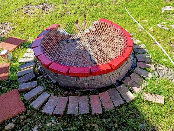 Beautiful viewsPatio outbackFire pitCement flooringLight colored tile floorsNew additionWooden privacy fence