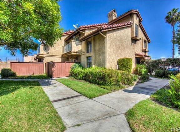 Best Buy in Huntington Park Your stunning new home offers 3 bedrooms 2.5 baths and over 1460 living sq. ft. This home is an end unit that is only attached on one wall that offers an over sized 2 car garage with a new opener, direct access to the home and has plenty of storage room. Downstairs is lined with brand new tan colored Porcelain Tile flooring, spacious living room with fireplace for quiet evenings at home, and slider door leading to private patio for barbecuing and sitting outside to enjoy cool nights and breezes. Spacious and open kitchen overlooks living room and dining area and plenty of cabinet space. New carpet lines the stairwell and all bedrooms upstairs. Home boats high vaulted ceilings, bedrooms are over sized with mirrored wardrobe doors. Master suite has dual closets, private balcony facing greenbelt sitting area and Association pool. Both bathrooms offer full tub shower combo. Home is move in ready. Run dont walk to the hot buy.