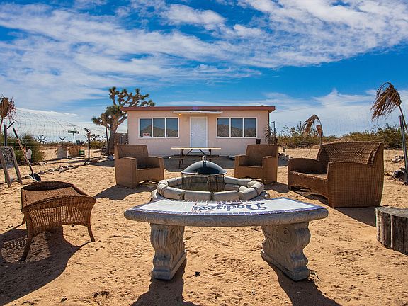 Wonderful 10 Acre property featuring two legal 5 Acre parcels, an original block cabin zoned SFR by County Assessor, many beautiful Joshua Trees, and gorgeous views. This is a must see for anyone serious looking for a getaway, rental, or to build out a custom home. Horse ranch, orchard, vacation rental? With this much land the possibilities are endless. Property includes a well cared for 1957 block studio cabin with power, bottle water, and outhouse. There is no water meter or bathroom on property so Cash only. Water District quoted $15,764 for a new water meter. Open space Government land on the north side of Bearing Tree aka Mitch Lane. Traditional masonry fireplace. Starry nights and snowy mountain views. Not far form Joshua Tree National Monument where in 2019 almost 3 million tourists visited. About 1 hour to Palm Springs and 70 minutes to Big Bear. 2.5 hours to downtown Los Angeles. Buyer to verify all information. APN: 0630-211-04-0000. Don't wait on this one call now!