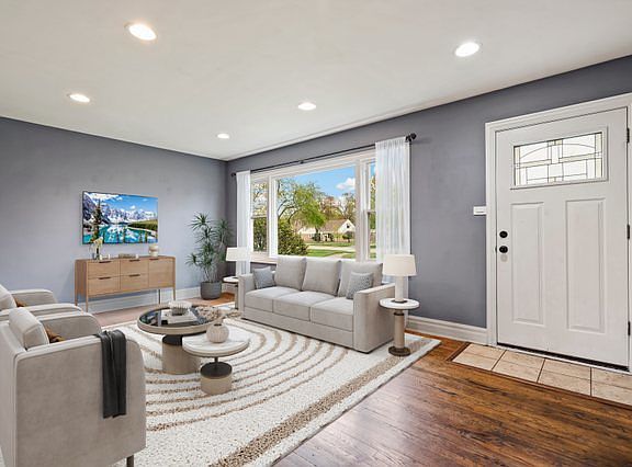 Welcome to this beautifully remodeled home that blends classic charm with modern updates. A charming front walk leads to stone planters that frame the entrance. Step inside to a bright living room featuring rich dark hardwood floors and plenty of natural light. The updated kitchen is a chef's dream with stainless steel appliances, granite countertops, custom cabinetry, and space for dining. Three spacious bedrooms and a renovated full bathroom complete the main level. The finished basement offers additional living space with a family room, rec room, second full bath, and a laundry area. Outside, enjoy the newly built raised deck overlooking a fenced backyard with mature trees and an above-ground pool, ideal for relaxing or entertaining. Plenty of room for parking in the detached two car garage. New AC in 2023! Great location, close to shopping, dining, parks and schools with easy interstate access. Make this home your own!