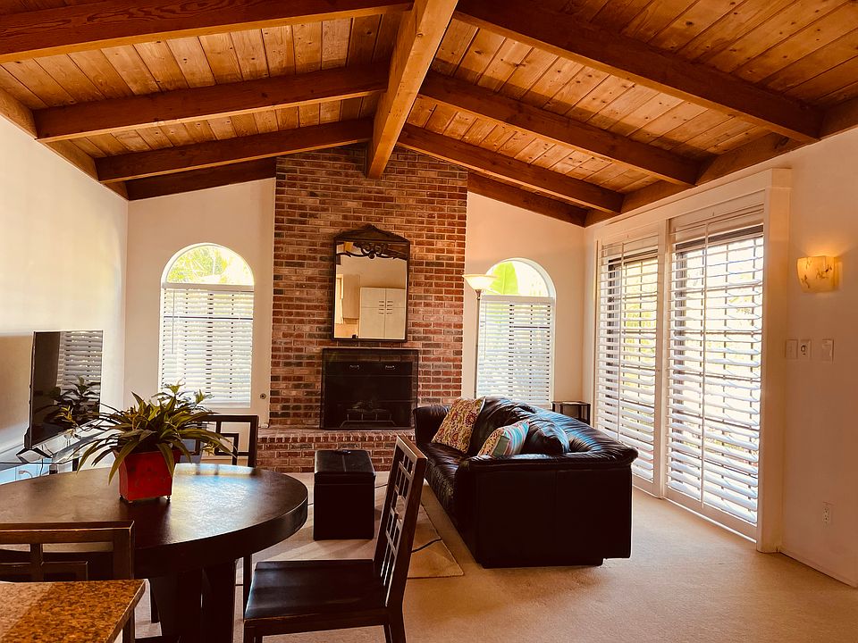 Feel at home in this privately situated spacious single story detached guest quarter in a garden view setting of a gated state. Formal living and dining rooms with vaulted ceiling, fireplace, primary bedroom with full bath plus powder room for your guests. Kitchen with gas stove, dishwasher and microwave. Washer and dryer. Owner pays for utilities. Available January 15 2026. Owner pays for utilities