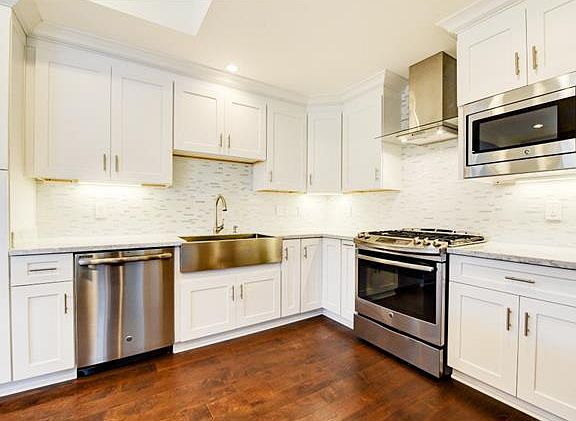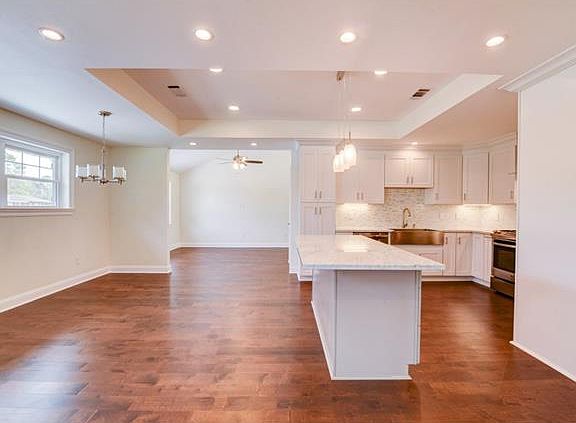 Gutted & renovated in 2017 with new: electrical, plumbing, HVAC, roof, gutters, birch wood floors, lighting, faucets, painted inside & out, trey & cathedral ceilings, fence, dbl driveway, patio. Completely new kitchen w/stainless steel appliances: 5 burner stove, apron farmhouse sink, glass canopy chimney hood, Carrara marble countertops, shaker cabinets + island. Master bathroom suite: floor to ceiling subway tile surround in the walk-in shower w/seat, independent tub, dbl sink, marble tops. Flood zone X