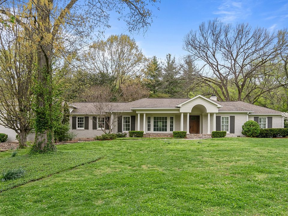 Nestled on a street with mature trees, this updated ranch - style home exudes modern charm and timeless appeal. It boasts a welcoming front door. Situated on a large level lot which offers plenty of space for outdoor activities and gardening enthusiasts. It has loads of mature trees providing privacy and tranquility. Interior has been tastefully renovated with an open concept layout, creating a seamless flow between the living spaces. Sunlight pours in through large windows. It has gleaming hardwood floors through out, spacious kitchen with granite countertops, stainless steel appliances and custom cabinetry. Bedrooms are generously sized and all with a bath. 2 car garage with tons of storage. Fenced in back yard too! Enjoy the walkability to Radnor Lake!