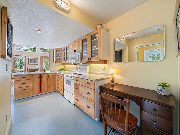 Dreaming of escaping the city & enjoying a more rural lifestyle? Look no further than this meticulously maintained, unique character home on over 3 acres of sunny, private land. Ringed by mature trees, the lightly sloping main yard has been cleared & enjoys warm western sun with established gardens and an outdoor entertaining space to rival any lifestyle magazine. The home maximizes natural light with vaulted, beamed ceilings on the open concept main floor; connecting to a kitchen that features custom built spalted maple cabinets milled from trees felled on the property. Downstairs has a flexible layout hosting a media room, bedroom, & in-law suite with its own kitchen and private entrance. Whether you are a gardening, sauna, or outdoor solar shower enthusiast, you cannot help but feel connected to nature here. Enjoy a quieter pace of life, while still being fully connected in under 5 minutes to grocery stores, local farms, wineries, & other modern amenities. Book your showing today!