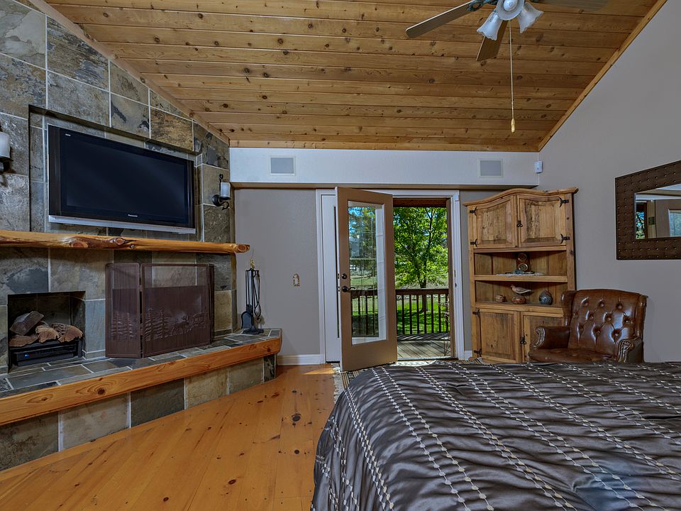 Owner Will Carry!!! Welcome Home To This Amazing 4 Bedroom / 4 Bath Custom Lodge Style Property On Almost 5 Acres! Once You Enter Through The Beautifully Hand Crafted Iron Gate, You Will Be Blown Away With The Scenery & All This Home Has To Offer! The Main Level Features A Huge Living Room With Vaulted Cedar Ceilings, Hardwood Floors, Fireplace & Floor To Ceiling Windows / Large Dining Room With Tile Flooring & Gorgeous Views / Master Bedroom On Main Level With A Spacious Walk-In Closet, Hardwood Flooring & Cozy Fireplace / The Master Bath Is A Dream With A Large Jacuzzi Tub, Tile Shower & Access To The Deck / Also On The Main Level Is Another Bedroom / The Kitchen Is Roomy & Features A Cute Breakfast Nook With A Nice Stone Accent Wall. From The Kitchen You Have Access To A Beautiful Deck With Spectacular Views Of The San Jacinto Mountains. This Deck Features An Electric Awning & Built-In Viking BBQ Grill With A Sink / The Lower Level Of The Home Features A Family Room With A Wood Burning Stove, Half Bath & Partially Covered Patio That Leads Out To The Backyard / The Upstairs Features Another Living Room With A Fireplace / Also On This Floor Is Another Master Bedroom/Bath & Deck Access! Other Features Include A Separate 3,500+ Sqft Garage For Up To 6-8 Cars With A Half Bath, Office, Work Shop, Separate Septic System & Electric Meter. Home Also Features A Standby Generator. Adjacent Buildable 4.71 Acre Lot Also For Sale MLS IV18057411.