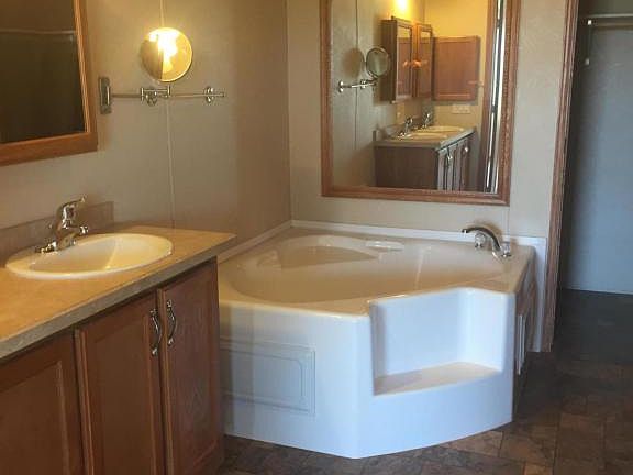 This is a mobile home home on its own land!! Features a large kitchen with island and 4 bedrooms including a master with its own bathroom and a large family room with fireplace and wet bar.