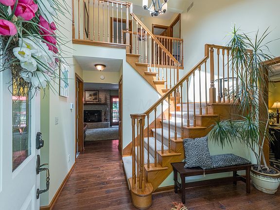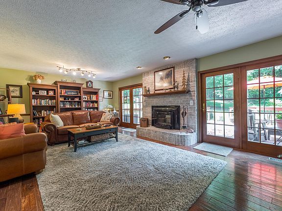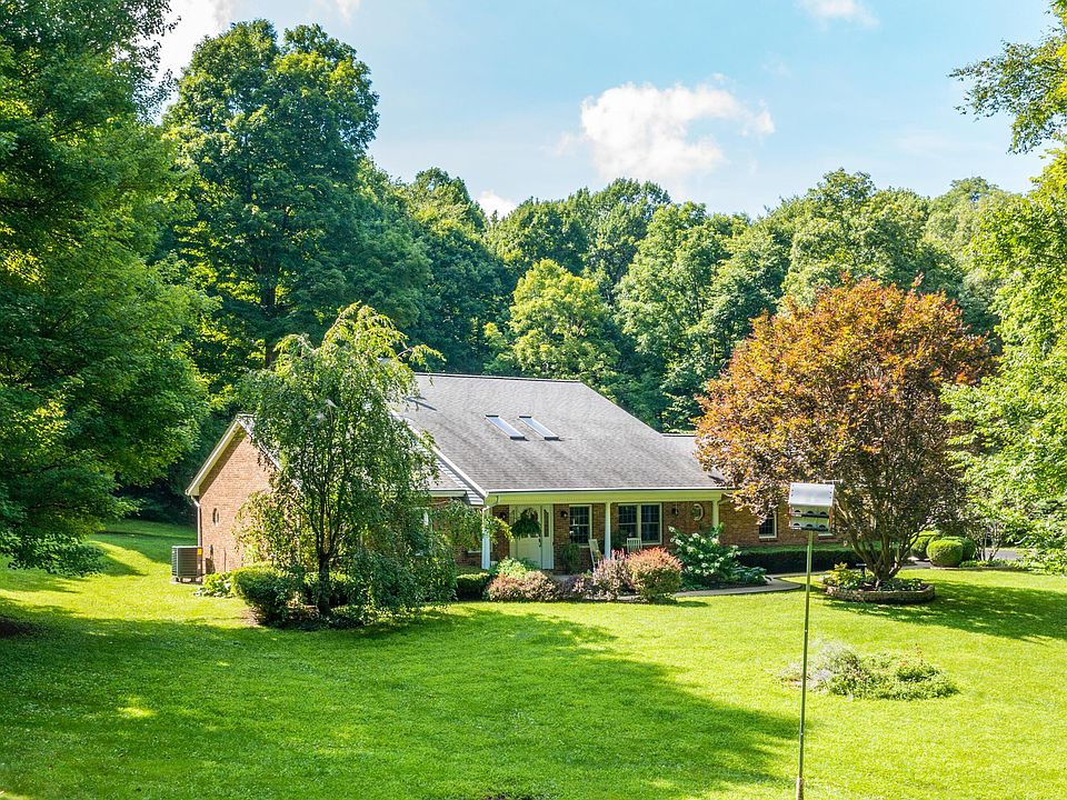 This beautiful custom home is a must see. Sits on gorgeous wooded 5.01 acre lot with pond. This home offers a first floor master bedroom (currently used as an office) w/new master bath features separate large soaking tub & shower. The large entry is highlighted by the 2 story ceiling, hickory hardwood floors & the custom open tread staircase. Off of the foyer is the formal dining room w/ crown molding & chair railing. The kitchen offers plenty of cabinets & granite countertops w/ island. Built in wall oven/microwave & gas cooktop. Open great room w/brick fireplace that has a wood burning stove insert. Bedrooms upstairs both offer walk in closets, crown molding and new main bath. Detached 2 car building w/workshop. Chicken coop, woods, deck, firepit area & garden.