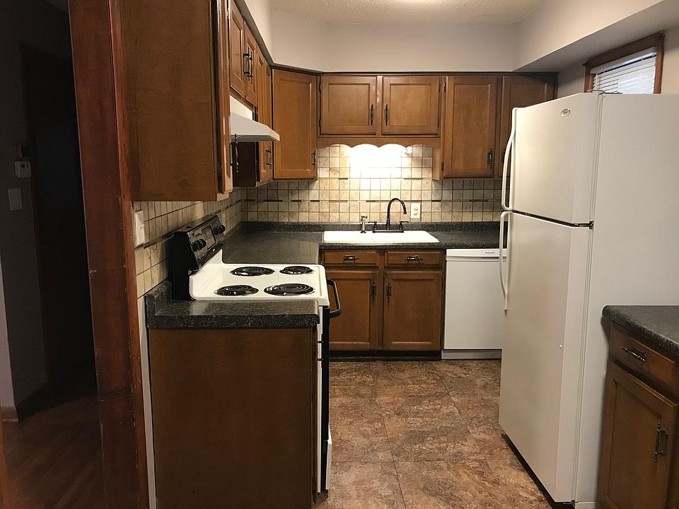 Right across street from Cessna Park ad bicycle/walking path. Hardwood floors in all bedroom and living room. Large den has luxury 18 x 18 vinyl flooring and a built in cabinet. One bath with newer vanity and newer flooring. Kitchen with eating space, range, refrigerator, dishwasher, wood cabinets and built-in china hutch. Newer updated backsplash. Main floor laundry hookups. Newer central air/central heat. Fenced yard. One car garage. Patio has view of Cessna Park. Front porch also has seating area to view Cessna Park. Partial unfinished basement for storage. Tenant responsible for electric, gas, water, trash and lawn maintenance.