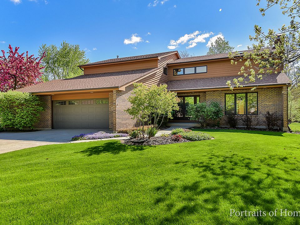 Thoughtfully designed, custom built California contemporary home in desirable neighborhood close to downtown DG. Living Room with volume ceilings opens to cozy Family Room with wood burning fireplace. Inviting, sunlit four season room with skylights. Updated Kitchen & Eating Area with recessed lighting, large pantry closet, quartz countertops & newer stainless steel appliances. Formal Dining Room with ample space for entertaining. Impressive Master Bedroom Suite with large walk in closet, & remodeled bath boasting walk in shower, double sinks, whirlpool tub & bidet. 3 additional spacious bedrooms with built in bookshelves, ceiling fans & ample closet space. Finished,basement with full bath, recessed lighting, gas fireplace, wet bar & bar fridge. Ample storage & dark room/workshop. 1st floor laundry/mud room with clothes chute, storage & hide away ironing board. Amazing outdoor space with enlarged paver brick patio, fire pit area, gardens & shed. Oversized garage, & newer roof.