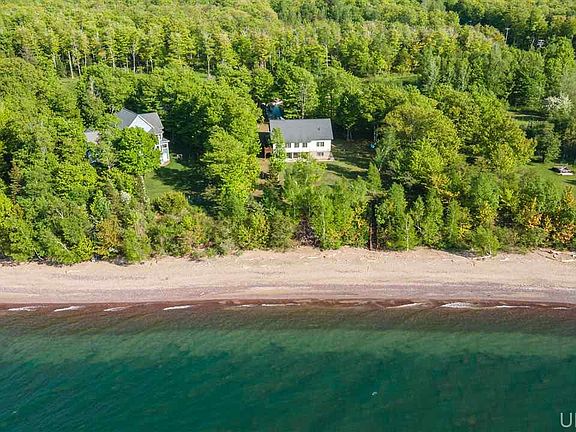 Lake Superior! Gorgeous views, beach and a very solidly constructed home! This 3 bedroom, 3 bathroom home has many beautiful features including oak flooring, oak doors, ceramic tile floors and approximately 154 feet of pebble beach on Lake Superior! The main floor provides one level living with 2 bedrooms including the master suite, open living/kitchen and dining area, sun porch that is heated for year round use and laundry. The lower level is a walk out and has the 3rd bedroom, bathroom, office/reading nook and spacious family/rec room. The seller invested a great amount in the construction that you will feel the benefit of including foundation with extra rebar, trusses designed for a potential second floor, extra wiring, Andersen windows, well insulated, concrete driveway and sidewalks, stairs to the lake! A beautiful home which has neutral colors and finishing for you to personalize with colors and decor of your preference! The seller built the home as a year round home but has used it seasonally. (Foundation/permits in 2005; built in 2007.)