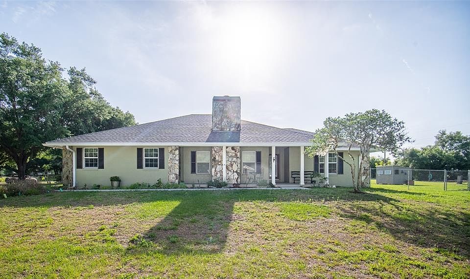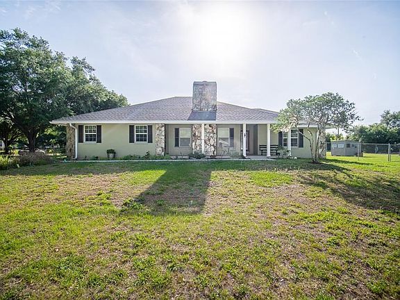 Slow down and take in the calm peacefulness of this property... the native flowers are starting to bloom, you can hear the leaves rustle the birds sing, and it's zoned for HORSES, so they are welcome too. There's plenty of room to gather inside or outside with family and friends. The OPEN FLOOR PLAN has a WOOD BURNING FIREPLACE in the Family room and the KITCHEN and DINING Room both OVERLOOK the GENEROUS SCREENED POOL/LANAI AREA. There is access to the pool from the Master Bedroom, Dining Room and the Hall bath. NATURAL LIGHT spills in all around, so you can cozy up to the BREAKFAST BAR in the kitchen with its SOLID SURFACE COUNTERS and STAINLESS APPLIANCES. SPLIT BEDROOMS with walk-in closets offer privacy for overnight guests, there are pocket doors throughout the home and the INDOOR LAUNDRY is conveniently located between the kitchen and garage. The home has an ATTACHED 2 car garage with a REMOTE GATE, 30 AMP RV HOOKUP, and a SHE SHED just outside that's approximately 10x16 with INTERIOR and EXTERIOR LIGHTING and a WINDOW A/C. The ROOF was installed in 2018, the EXTERIOR WAS SEALED AND PAINTED in 2018, the POOL ENCLOSURE was RESCREENED in 2018, and the A/C was installed in 2016. Back outside imagine being surrounded by 2.33 ACRES FULLY FENCED and CROSS FENCED with two 5' walk through gates, and a 12' drive through gate to access the ADDITIONAL DETACHED GARAGE and SHOP. Whether you're a car enthusiast, have an RV that you want garaged, need additional storage, enjoy woodworking or any type of hobby you can imagine, the additional detached garage and shop can accommodate just about anything. The wood frame DETACHED GARAGE sits on a slab 23' x 30', with a single garage door, 110v and 220v single phase power for a welder and 30 amp outside RV hookup. The metal SHOP 36' x 48' was built in 2019/2020, it has an insulated roof, 110v power and outlets and shop lights. There are also two 12'x12' roll up doors (big enough for RV parking) and one 10'x10' roll up door. There are multiple spigots on the property and irrigation to the garden plot and bamboo in the front and back. Call for a private visit to this home, it's such a pleasure to show.