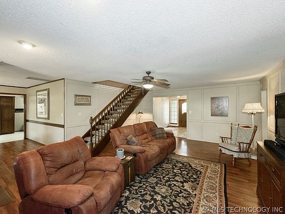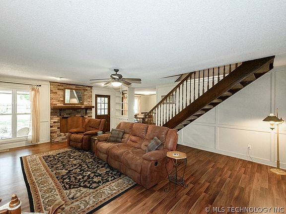 This home sits on a large 0.35 ac lot in the heart of South Tulsa. Close to Hunter Park, quick access to Tulsa's walking/biking trails, & the Creek turnpike make this home the ideal location. Beautiful living rm, with large entryway, 4 bedrooms downstairs with walk in closets, including the Master bedroom. Game room, full bath & 5th bedroom upstairs or it can be a 4 bedroom + an office. Walk-in attic. Backyard features covered patio, mature trees, bananas trees, perennial landscaping + metal storage shed.