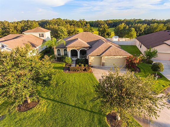 Experience this impeccable quality and design in this recently built 5 bedroom, 3 bath, den home on an oversized cul-de-sac lot with 3-car garage in Lexington! Talk about curb appeal - This one has that charm - framed in gorgeous, low maintenance landscaping and quaint front porch where you can relax the Florida days away! Enter and feel a unique open floor concept plan with the kitchen and great room at the heart of the home. Model quality finishes and thoughtful touches are inundated throughout the home from stacked stone exterior, upgraded flooring, granite counter tops, and stainless steel appliances. Retreat to a spacious master bedroom with ample space for additional sitting area and double walk in master closets. The master bathroom is finished with double vanity, large garden tub and separate shower. Entertain your family and friends on the private screened lanai overlooking an expansive rear, fenced in yard with playset. Lexington is zoned for the new Parrish Community High School and in the heart of Parrish's growth area. The community is convenient to the outlet shopping mall, beaches and features a community pool, basketball court, park, and is a highly active with social groups and community gatherings! A small CDD Fee included in the tax bill!
