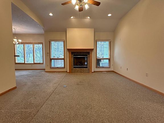 Easy living in this one owner well-maintained walkout ranch backing up to a tranquil tree line with visiting Deer and Turkey. Take it easy while your $125/month HOA covers lawncare and snow removal. Main floor with high ceilings and a warm fireplace has primary bedroom and primary bath with a second full bath and an office on main floor that could be used as a non-conforming bedroom complete with Egress. Lower level/walkout basement features a large rec room and 3/4 bath adding approx. 790 finished sq ft but also leaves a ton of storage space! Freshly painted throughout. Flooring allowance included. All appliances stay. Handicap ADA accessible equipment (chair lift from garage and chair lift from main level to the basement) conveys with the sale of the property.