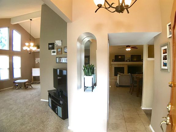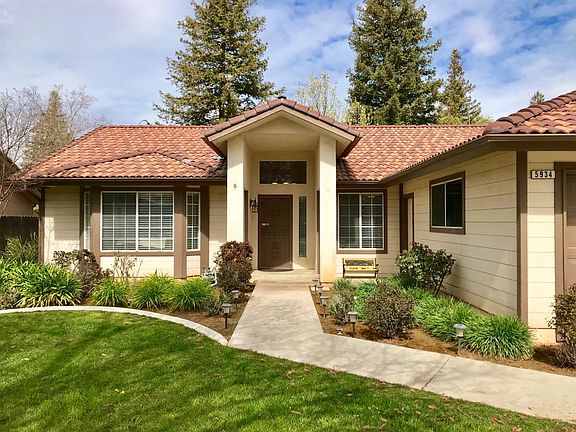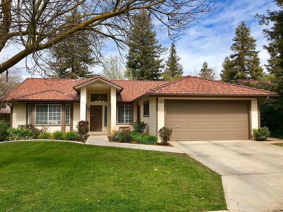 Back on Market! Spacious McCaffrey built home in Northwest Fresno with tile roof. Enter foyer and to the left you have a nice size living room with Bay window to the front and an adjoining formal dining room, both with vaulted ceilings and lots of natural light. Kitchen is well appointed and has rich granite counters over honey oak cabinets and open to the eating area and family room/ game room with slider to patio, gas fireplace and entertainment niche all on tile floors. Laundry room has upper cabinetry. Down the hall, with blt-in upper & lower cabinets, you'll find the bedrooms and hall bath that has dual sinks. Master suite has double door entry, vaulted ceiling, walk-in closet, slider to patio and large bath with dual sinks and walk-in Roman tub/shower. Covered and uncovered patio with shades is perfect for entertaining while still having a nice grassy area for croquet or play.
