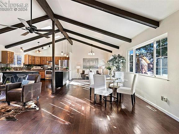 Nestled in the heart of Colorado Springs, this captivating bi-level home with a basement offers a perfect blend of elegance and functionality. Located in a peaceful cul-de-sac, the property boasts a prime location near numerous shops and restaurants in the Academy Blvd and Woodmen Rd area. As you step inside, be greeted by the warmth of wood floors and the grandeur of vaulted and beamed ceilings, creating an inviting and spacious ambiance. The kitchen, adorned with granite countertops, is a chef's delight, combining style and practicality seamlessly. Two fireplaces, one wood-burning and another gas-burning, offer cozy gathering spaces for family and friends, perfect for creating lasting memories. The attention to detail extends outdoors with a meticulously xeriscaped yard, providing a low-maintenance oasis for relaxation and entertainment. Imagine summer evenings on the patio, surrounded by nature's beauty. This well-maintained residence is a testament to quality living, where every corner exudes a sense of pride in ownership. With its strategic location, impeccable features, and charming cul-de-sac setting, this home invites you to experience the best of Colorado living. Don't miss the opportunity to make this property your own slice of paradise. Come see this amazing home before it's gone!