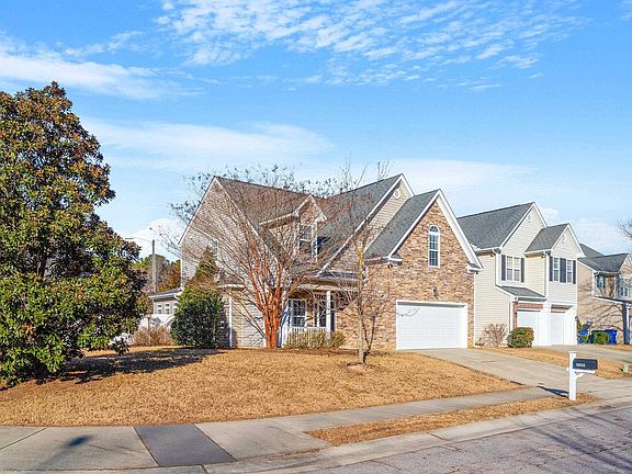 Beautiful end lot home in wonderful North Raleigh. This home features: a family room w/ Fire Place & HW floors, a sep dining room, kitchen w/ SS appliances, tons of cabinet space & extra kitchen space in sunroom, Private 1st floor master suite w/ large WIC & a master bath w/ garden tub/sep shower. 2nd floor features 3 additional bedrooms w/ full bath. A large bonus/rec room. Laundry on 1st & 2nd floor! A Fully fenced yard, a large patio & home wired for surround sound.