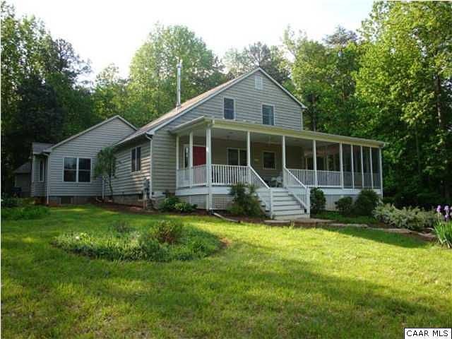 Privately situated on a mostly wooded 5.46 acre lot located in the Free Union/Earlysville area, this 4 bedroom 3.5 bath home features a wonderful first floor master suite addition with laundry, wide pine wood flooring, cathedral ceiling in great room, a 2nd floor master bedroom, full unfinished basement, breezeway to oversized custom built garage and a wonderful wrap around custom built porch with Trex flooring, a portion of which is beautifully screened for outdoor living at it's very best! Completely refinished kitchen: cabinets, appliances, floor covering, and tile backsplash.
