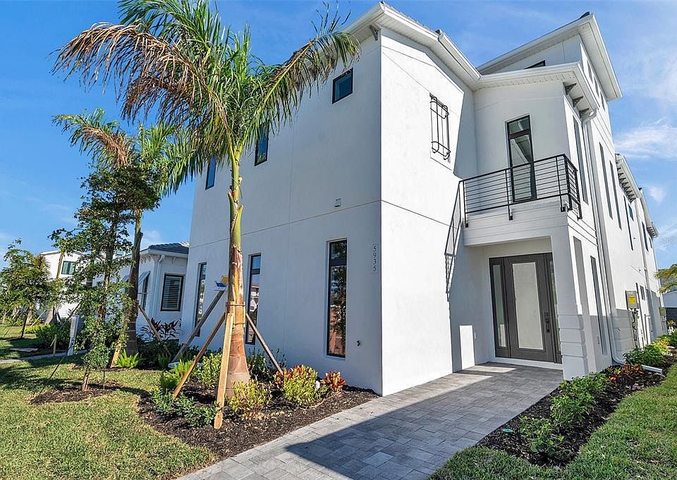 Welcome to your custom-built "Salt Meadow" model home in the prestigious gated Aqua community—where luxury, comfort, and elevated design seamlessly converge. This brand-new, never-lived-in residence offers 4 spacious bedrooms, 5 luxurious bathrooms, a versatile den, a LOFT and nearly 4,000 heated square feet of living space. Natural light floods the expansive open floor plan, highlighting the beautifully designed interiors. The heart of the home—a grand gourmet kitchen—features a large extended island perfect for entertaining, painted custom cabinetry, premium quartz countertops, and stainless-steel appliances, including a natural gas cooktop. The kitchen seamlessly flows into the great room, creating an ideal space for gatherings. The private courtyard oasis is a true showstopper, offering the ultimate indoor-outdoor living experience. This space features a heated pool with customizable jets, a tranquil waterfall, and ample room for relaxation. For added convenience, the oversized lanai is prepped for a natural gas outdoor kitchen, perfect for poolside barbecues. The luxurious primary suite offers a serene escape with an oversized walk-in closet, a private balcony overlooking the pool courtyard, and a spa-inspired bathroom featuring dual vanities, a freestanding soaking tub, and a walk-in rain shower with frameless glass. Each of the guest bedrooms includes private en-suite bathrooms and walk-in closets. A dedicated second-floor laundry room adds ultimate convenience, with additional laundry hookups in the garage for added flexibility. Unique to this property is the extended 3-car garage, providing ample storage, space for three vehicles, and room for all your needs. Thoughtful upgrades include wood and tile flooring, upgraded tray ceilings with elegant lighting, and hurricane-proof PGT windows for maximum protection. The community is elevated and features advanced water management systems, ensuring peace of mind in any weather conditions—all located in a non-flood zone. Nestled in the luxurious Aqua community, this home is just steps away from the exclusive 4-acre tropical lagoon, where residents can enjoy swimming, kayaking, and paddleboarding. With low HOA fees that cover landscaping and high-speed fiber internet, this home truly offers resort-style living with modern convenience. Aqua’s prime location ensures quick access to IMG Academy, golf courses, Bradenton beaches, Sarasota Bay, SRQ Airport, and the University Town Center Mall. Don’t miss this rare opportunity to own a stunning home in one of Florida’s most desirable gated communities. Schedule your private showing today and step into a life of unparalleled luxury, comfort, and style.