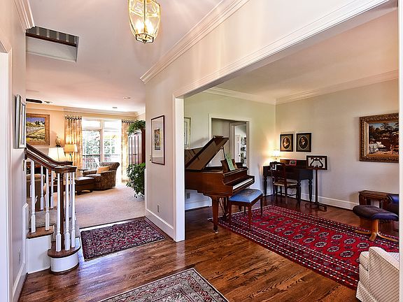 Gorgeous Berkeley home situated on a beautiful lot tucked away on a private street. Well maintained and ready for new owner. Features include a Master down, large kitchen with bay window,hardwood floors,crown molding,separate bonus room suite off kitchen with full bath, 4 additional bedrooms upstairs, 4.5 baths total! Mud room with custom built in laundry area and side entry to driveway. Huge 726 sqft garage with workshop.Extensive walk in storage.Brand new carpet in master & 2nd floor!