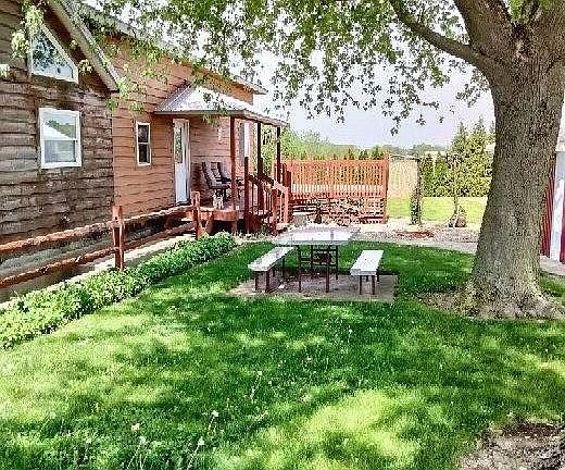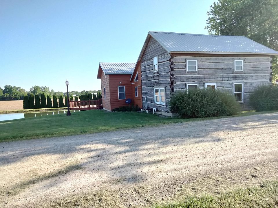 First right with 24hr. Historic log cabin with an Open concept addition. Vaulted ceilings and natural gas fireplace in addition. Home is located in Southwest Whitley county just minutes from Aboite township. Home sits on 1.84 acres 2 bedrooms, 2.5 baths with loft. Master bedroom has walk-in closet and en suite. Kitchen has 8 ft. butcher block island with plenty of cabinets. Stainless steel appliances, dishwasher, refrigerator, gas stove and microwave (new in 2021), washer and dryer all stay. Garage and shop holds6 cars Shop has in-floor lift with air compressor, overhead hoist, steel work benches and natural gas. Has in floor drain and bathroom. Beautiful u shaped pond stocked with bass, bluegill, and catfish. Barn could be used for storage and 4-h projects. House, garage, shop and barn all have metal roofs. Close commute to GM, Lutheran, I69, and FW International Airport. Owners must find suitable housing. Property is SOLD AS IS.