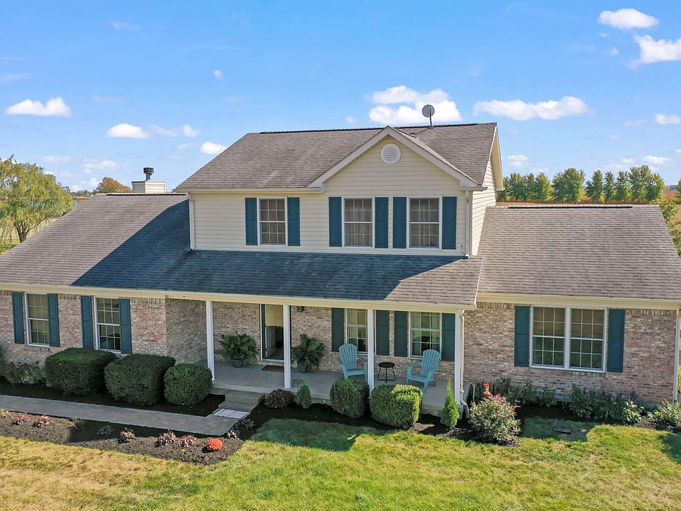 This exceptional property features a 4-bedroom, 2.5-bathroom home on 23.5 acres, complemented by a 36x80 FBI built pole barn and an array of appealing amenities. With road frontage on two sides, this property offers easy access and a spacious feel. The well-maintained yard, covering approximately 3 acres, includes an invisible fence for safety. Inside, the main level features a primary suite, hardwood and tile floors, and a well-equipped kitchen with granite countertops. The great room boasts a wood-burning fireplace, while a security system and custom trim work add to the home's appeal. The sunroom with built-in bookshelves offers a peaceful retreat, and vinyl waterproof flooring in the bathrooms ensures practicality. New Pella windows grace the formal living room, great room, and sunroom, enhancing energy efficiency and modernizing the space. Outside, a 34x24 paver patio provides an excellent outdoor gathering area with serene views of the expansive grounds. The 23.5 acres offer versatile possibilities, and the 36x80 pole barn is perfect for storage or workshops. In summary, this property harmoniously combines rural living with modern conveniences. With a primary suite, granite countertops, hardwood and tile floors, and an array of practical features, this property is truly exceptional. The extensive acreage, well-equipped pole barn, and meticulous construction make this property a rare find. Whether you seek space, comfort, or room to explore your interests, this property offers it all.