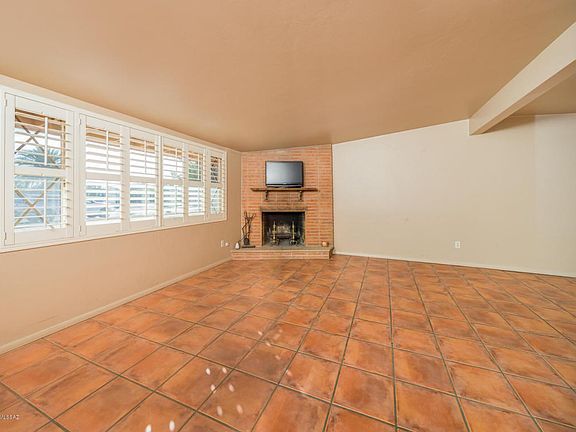 Charming Midcentury home on large cul-de-sac lot! Large bedrooms, huge front and back yards, ample covered parking, and mountain views! Beautiful brick woodburning fireplace, ALL TILE floors, extended front and back brick paver patios; shutters on some windows. Master bedroom has a slider to the backyard. Hall bath toilet was just replaced and master toilet was serviced. Space to park your RV! Newer stainless steel fridge and dishwasher; washer and dryer convey, too!