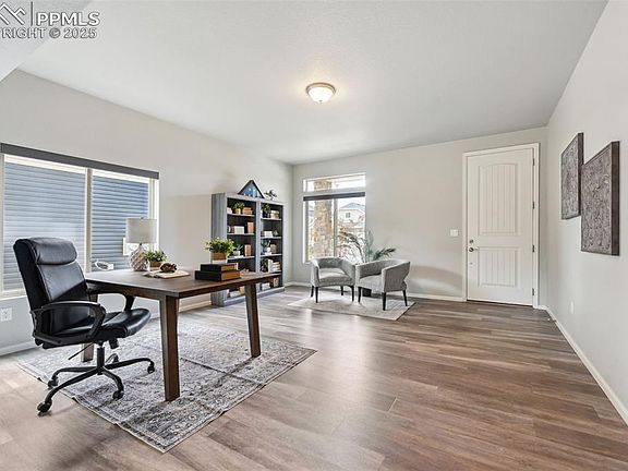 Stunning Home In BANNING LEWIS RANCH with incredible open floor plan. The natural light flowing through the picturesque windows of the main level draws you in. The front dining room is the start of an entertainers paradise. From the front room the home opens to a spacious living area with gas fireplace and surround sound, that flows seamlessly into the kitchen area. The kitchen boasts a barstool height center island, stainless steel appliances, and ample counter and cabinet space. The main level walks out to a patio and gorgeous fenced backyard that is perfect for the upcoming summer bbq season. The upper level has a loft area that is currently being utilized as a second family room. The main bedroom is just next door creating a private oasis separate from the other bedrooms. The primary bedroom has barn doors leading to the ensuite bath featuring a large walk in closet, gorgeous stand alone shower, and double vanity. The upstairs also has bedrooms two, three, and four with a full bath. Part of this homes wow factor is the basement family room with games galore. The space currently has multiple games including pool, shuffleboard, darts, foosball, and air hockey which can easily be replicated with the same layout or utilized in myriad other ways depending on needs. The basement is also roughed in for a fourth bathroom. This fabulous home is located in the Banning Lewis Ranch community with amenities galore. Walking distance to school, hiking/biking trails, pools/parks. Community includes pickle ball courts, dog park neighborhood schools, over 65 acres of parks/trails/open space, tennis courts, basketball court, rock climbing parks, zip-lines, access to pools, splash pad, water park, and dog park. Recreation center houses a fitness center and also regularly hosts classes and events for all ages. In the summer months, catch a neighborhood concert, festival, food trucks, farmers market or enjoy other regular community events. This community has it all.