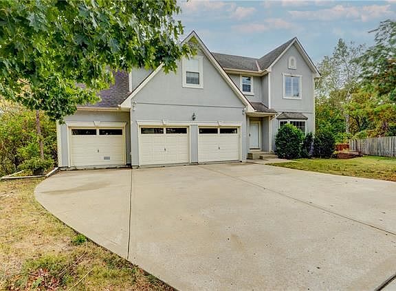 Beautiful, spacious, low-maintenance 2-story gem on a cul-de-sac, backing up to a treed park area in much desired Sunpointe Village! Large, updated kitchen with granite countertops, island and butler's pantry all on hardwood floors. HUGE primary bedroom with see thru fireplace to Jacuzzi. Open floorplan with lots of natural light, finished lower level and a SUSPENDED GARAGE for tons of storage. A great home with easy access to all of the KC metro area.