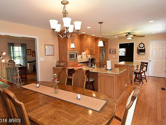 All-brick park-like setting 1.28 ac mins fm Potomac River & public boat ramp. Remodeled gourmet kitchen w/ granite & SS applns. 3 baths updated, elegant wide hardwd floors, 2 fireplaces, pellet stove, new windows, GEOTHERMAL heating system, 2-car attached garage, PLUS detached 1,120 sqft garage that is complete pro woodshop! Entertain or just relax on scrnd porch or brick patio w fire pit. NO HOA!
