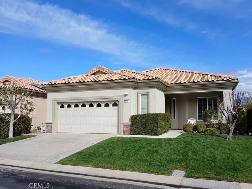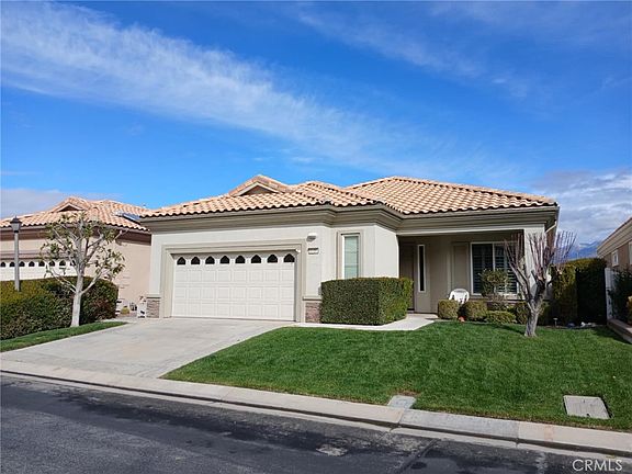 Highly Desirable, Energy Efficient, 2003 PULTE Built "TRILLION" Model w/MOUNTAIN VIEW FROM BACKYARD in Beautiful SUN LAKES COUNTRY CLUB, SO. CALIFORNIA'S PREMIER 55+ ACTIVE ADULT COMMUNITY. Approx. 1683 SF, 2 BD + Den, 2 BA, featuring the Great Room Concept, Open Kitchen with Corian Counters, Individual Indoor Laundry Room with soaking sink, Large Primary Bedroom w/huge Walk In Closet, Primary Bath with both walk in Shower & Garden Tub, Guest Bedroom w/Jack & Jill Bath, Ceramic Tile / Wood Flooring, Push Button Fireplace in Living Room, Plantation Shutters, New Water Heater, Newer Washer/Dryer, French Door Refrigerator, New Garbage Disposal & Kitchen Sink Fixture, Solid Alumawood Patio Cover, Low Maintenance Yard with a Lovely View Of the San Gorgonio Mountains. Excellent Location.YOU WILL LOVE THIS HOME! Two 18 Hole Golf Courses - Championship & Executive, Driving Range, 2 On Site Golf Pro Shops, 3 Clubhouses, Grand Ballroom, 2 Restaurants, NEWLY EXPANDED & REMODELED LOUNGE, Indoor & Outdoor Pools, Bocce Ball, Tennis, Pickle Ball, All Types Of Clubs & Events - Endless Opportunities For New Friendships. PLUS NO MELLO ROOS! AT SUN LAKES COUNTRY CLUB - EVERY DAY FEELS LIKE A VACATION!
