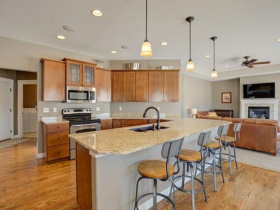 *SALE PENDING* WEEKEND GETAWAY EVERY DAY WITH A TURN KEY HOME OFFERING 2.06 ACRES OF NO REAR NEIGHBOR AND MATURE TREE VIEW. NO STRESS HERE WITH LUXURY AMENITIES SUCH AS A COVERED DECK AND SIDE YARD PRIVACY FENCE TO THE PATIO. YOULL ENJOY THE PAVER BRICK SITTING OR FIRE PIT AREA, WALKING ACCESS TO THE PUTTING GREEN, CHIPPING AREA, AND OUT-LOT A GREEN SPACE. ENJOY A MULTI ZONE SOUND SYSTEM THROUGHOUT THE 2,708 FINISHED SQUARE FEET OF LIVING. ARCHITECTURAL DRAWN SPLIT BEDROOM FLOOR PLAN OFFERING 9, 10, AND 11 FOOT CEILINGS AND AN OPEN STAIRWAY TO THE LOWER. WELL DESIGNED KITCHEN THAT FLOWS INTO THE GREAT ROOM AND OUTDOOR AMENITIES, 108" OF COUNTER HEIGHT BAR SEATING, PANTRY CLOSET, AND STAINLESS APPLIANCES. MASTER BEDROOM (135" X 165") OFFERS A SUITE LIKE FEEL WITH ADULT HEIGHT DUAL SINKS, WALK IN SHOWER, SIX FOOT GARDEN TUB, SPEAKERS, AND WALK IN CLOSET. THE LOWER LEVEL IS EASY FOR ENTERTAINING OPTIONS IN ADDITION TO A 120" DRAGONFLY HD SCREEN AND PROJECTOR (CAN BE REMOVED AT BUYER REQUEST). LOWER PRE-PLUMBED FOR A WET BAR, ADDITIONAL BONUS ROOM OR THEATER FRAMED AS WELL. AMENITIES INCLUDE SOLID WOOD DOVETAIL CABINETRY, UPGRADED WHITE TRIM, PASSIVE RADON SYSTEM, PRE-WIRE FOR ALARM, PRE-PLUMB FOR CENTRAL VACUUM, TALLER 8 GARAGE DOORS AND 12 CEILING, RUBBERMAID FAST TRACK GARAGE SYSTEM, CUSTOM BLINDS THROUGH THE HOME INCLUDED. AVERAGE MONTHLY GAS: $46, ELECTRIC: $235. FALL 2020 5-6 BOULDER PEAK INTERMEDIATE SCHOOL.