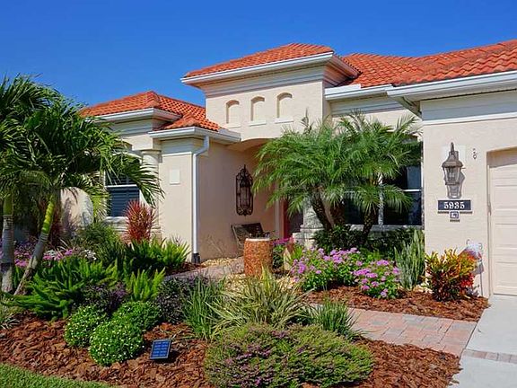 Welcome to this Mediterranean inspired Lee Wetherington Executive Home (Ashley Model) . Brief synopsis New New New... New floors, new granite in kitchen & all baths, new landscaping, new marcite, new lanai screen, new high end stainless appliances, newer a/c No golf fee. Solar heated & Salt water generator for pool/spa/cleaning pop ups. Unsurpassed design and detail with high end features and a floor plan that flows effortlessly thru the home. This 4/3 heated pool and spa home is impeccably appointed with every upgrade you can imagine. Nestled on a spectacular preserve /lake front golf course lot (Hole 9) which provides a wonderfully private oasis feel. Crown molding accent thru out the home with tray ceiling in master & double tray in family room. Updated security system, added electrical surge protector for entire house, separate surge protector for a/c, all fans replaced inside and out, PGT hurricane rated windows & sunblock film to safeguard furniture &floors and reduce heat, beautiful wood plank tile floors throughout the house. Gorgeous high end granite counters in kitchen and baths, decorative travertine tumble stone inlays accent the kitchen backsplash. Beautifully landscaped Backyard island enhanced w/decorative stone pavers around perimeter of beds. Master Suite has beautiful blank tile floors and two walk in closest. Double etched doors . Wood blank tile at entrance w/herringbone pattern. Ask for Upgrade list. THIS IS TRULY A MOVE IN NO WORRY EXECUTVE HOME UNDER $500K.