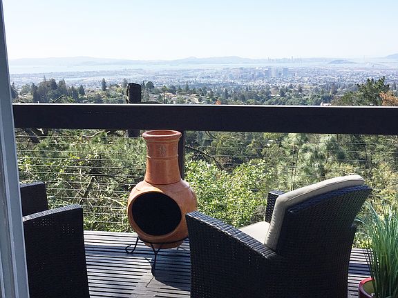 Do not miss this stunning view! Downtown Oakland, Downtown SF, several bay bridges. Unbelievable! Home is totally remodeled - new kitchen with SS appliances, baths, flooring, dual pane windows, heating, deck and more. Open House - Shuttle will run from Joaquin Miller School. Do not drive to property - very limited parking.