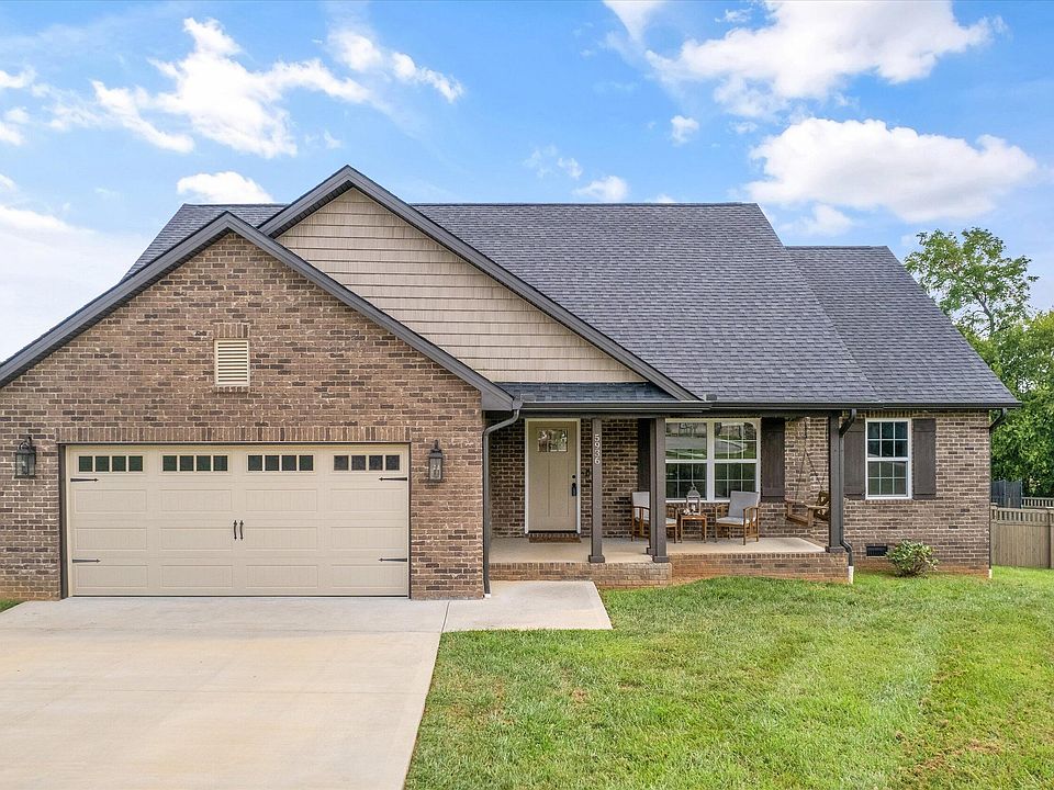 This all brick rancher is the only one of its type in the entire subdivision. The custom built home sits in a quiet cul-de-sac in the back of the subdivision with exceptional privacy and features a wonderful large fenced back yard with a pool. The floor plan features the split bedroom design. The house is graced with wood floors in the main areas and carpet in the bedrooms, white kitchen cabinets, walk-in pantry, beautiful granite tops, stainless appliances, and large laundry room with deep sink. Primary bedroom suite and kitchen area both lead out to a covered porch. Primary bath has a walk-in shower and a negotiable full sized sauna. Walk-in closet in primary bedroom is spacious! Color scheme of the house is neutral and tends to match any furniture or colors. You'll be impressed with this one level house that backs up to pastoral farm land in a subdivision with NO HOA.