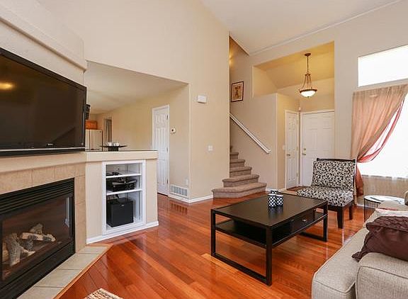 Welcome Home. Pride of ownership. Move in condition, Spacious Two Story Home, finished basement, 4 bedroom, 4 bath, 2 car garage located in Saddle Rock Ridge, Cherry Creek School District. Open and spacious floor plan. Living room has wood floors, vaulted ceilings, ceiling fan and gas fireplace. Spacious kitchen with eating space and plenty of cabinets. Upper level Master bedroom with full bath and walk in closet, two additional bedrooms and full bath. Upper level has new carpeting and padding. Finished basement with spacious family room, fourth bedroom and full bath. Additional features include newer roof, newer exterior paint, newer windows on upper level, all appliances, window coverings, security system, large patio, fenced backyard and nicely landscaped yard. Perfect for outdoor living and entertainment. Conveniently located near schools, public transportation, E470 and Southlands Mall for shopping and dining.