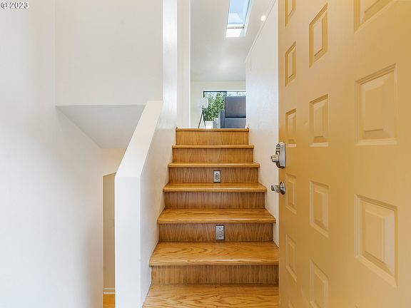 Experience tranquility in this luminous abode nestled within the highly sought-after John's Landing neighborhood, just a stone's throw away from the scenic Willamette River and the vibrant South Waterfront district. This two-level home boasts two bedrooms and two baths, thoughtfully designed to maximize every square inch. The open-floor plan on the main floor creates a haven filled with natural light, courtesy of generous skylights and soaring vaulted ceilings with freshly refinished hardwood floors reflecting light. Step into the newly remodeled kitchen, featuring contemporary cabinets, stainless steel appliances, and exquisite quartz countertops, beckoning you to culinary adventures. The lower level offers separate sleeping quarters, comprising two bedrooms and one bath, providing the ideal amount of separation from the living space upstairs. The expansive primary bedroom includes a private sitting area and patio doors that lead to your very own secluded patio space. Unwind and revel in the beauty of nature on the expansive deck off the kitchen, adorned with modern railings. Embrace your green thumb in the sun-kissed front yard, which presents abundant opportunities for gardening. Positioned on a serene street, this home provides a peaceful ambiance while maintaining easy access to local restaurants (JoLa Cafe and Elephants Delicatessen), shops (Zupans), Willamette Park, George Himes Park (Marquam Trail) and river trails (South Willamette Greenway Trail), OHSU Center for Health and Healing + Tram Stop (only 1.5 miles), public transportation, and multiple freeways. Discover this serene retreat within reach of urban amenities just ten minutes from downtown Portland. This property holds great investment potential, as the previous owners experienced an annual gross rental income of $33,000 before undertaking its current renovation.